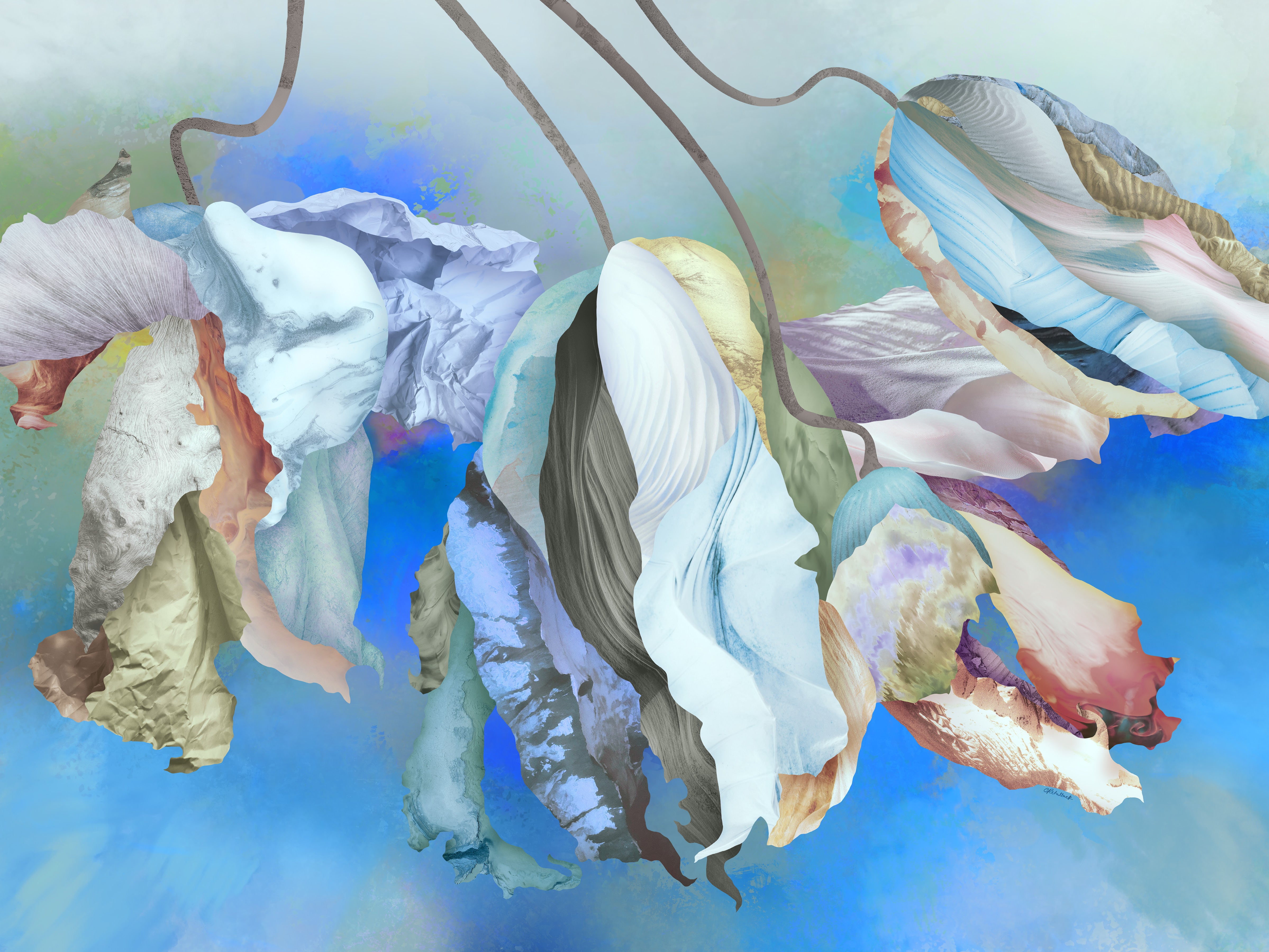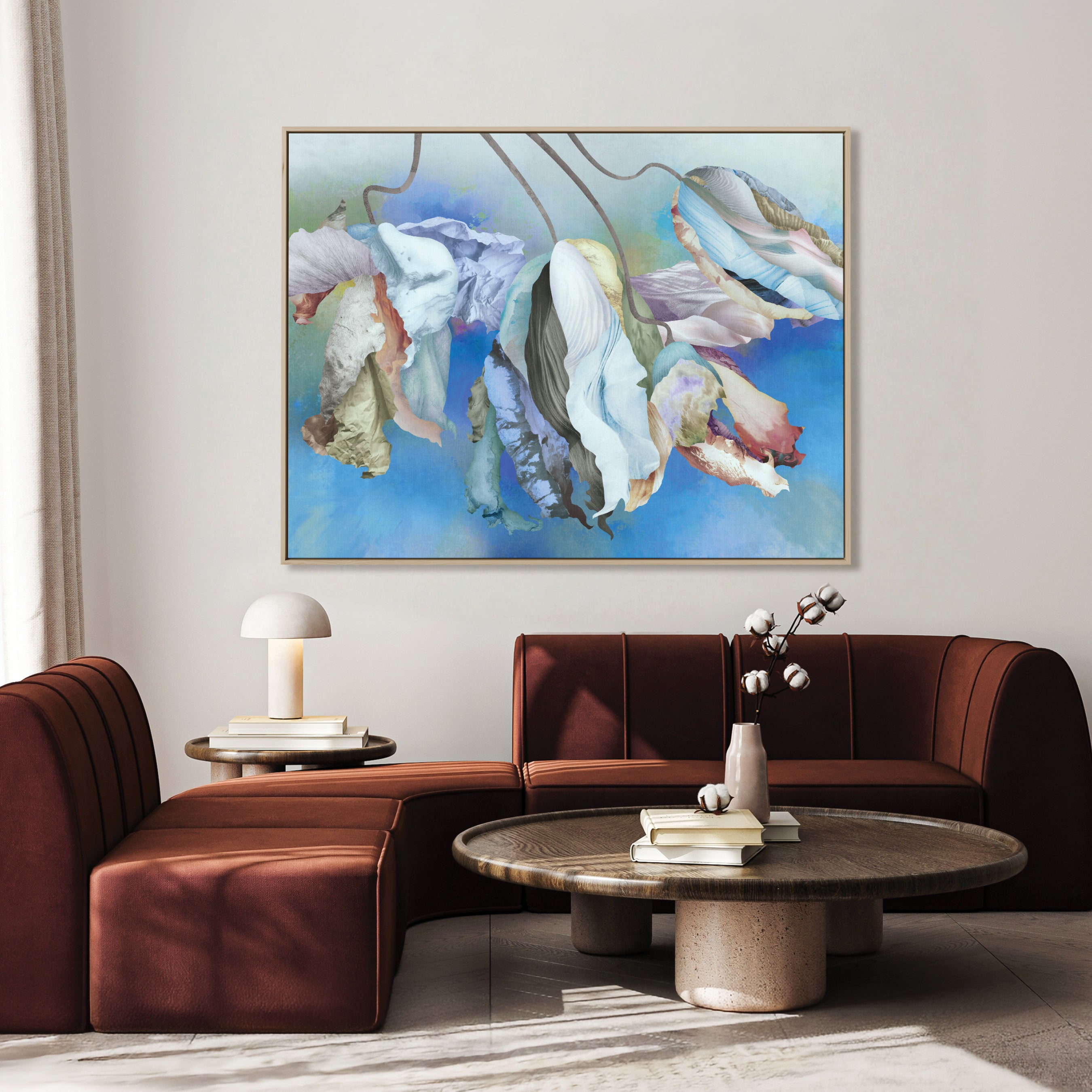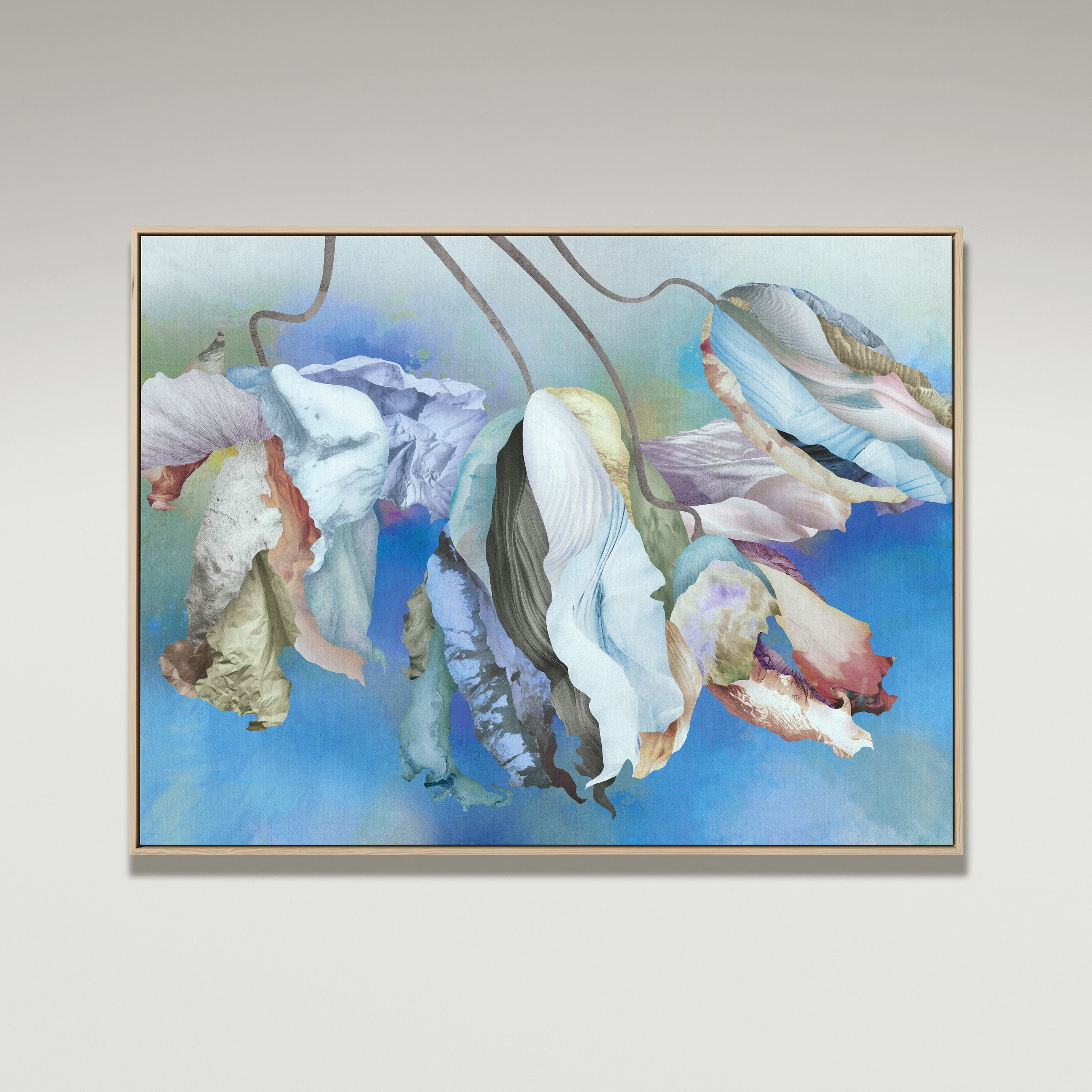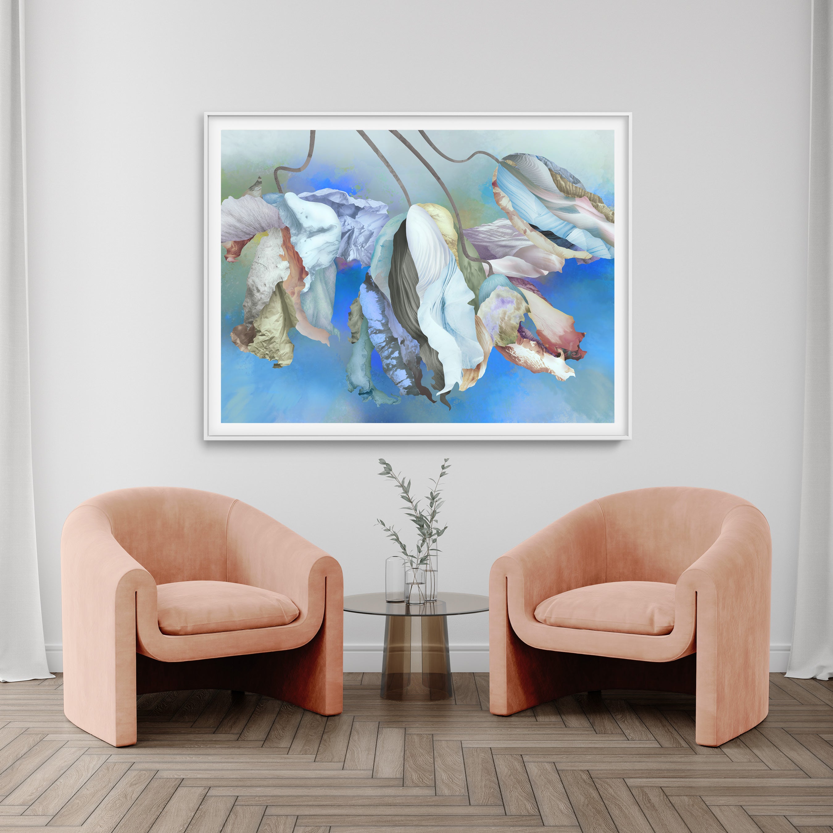 A cascade of delicate floral forms suspended in motion, this piece explores the quiet beauty found in surrender. Soft blues and gentle greens wash across the composition, joined by muted pastels that speak to release and renewal. Sometimes what feels like an ending is simply a redirection – an invitation to let go of expectations and embrace the unknown. A gentle reminder that even in the fall, there is possibility, and in every closing, the promise of something new.