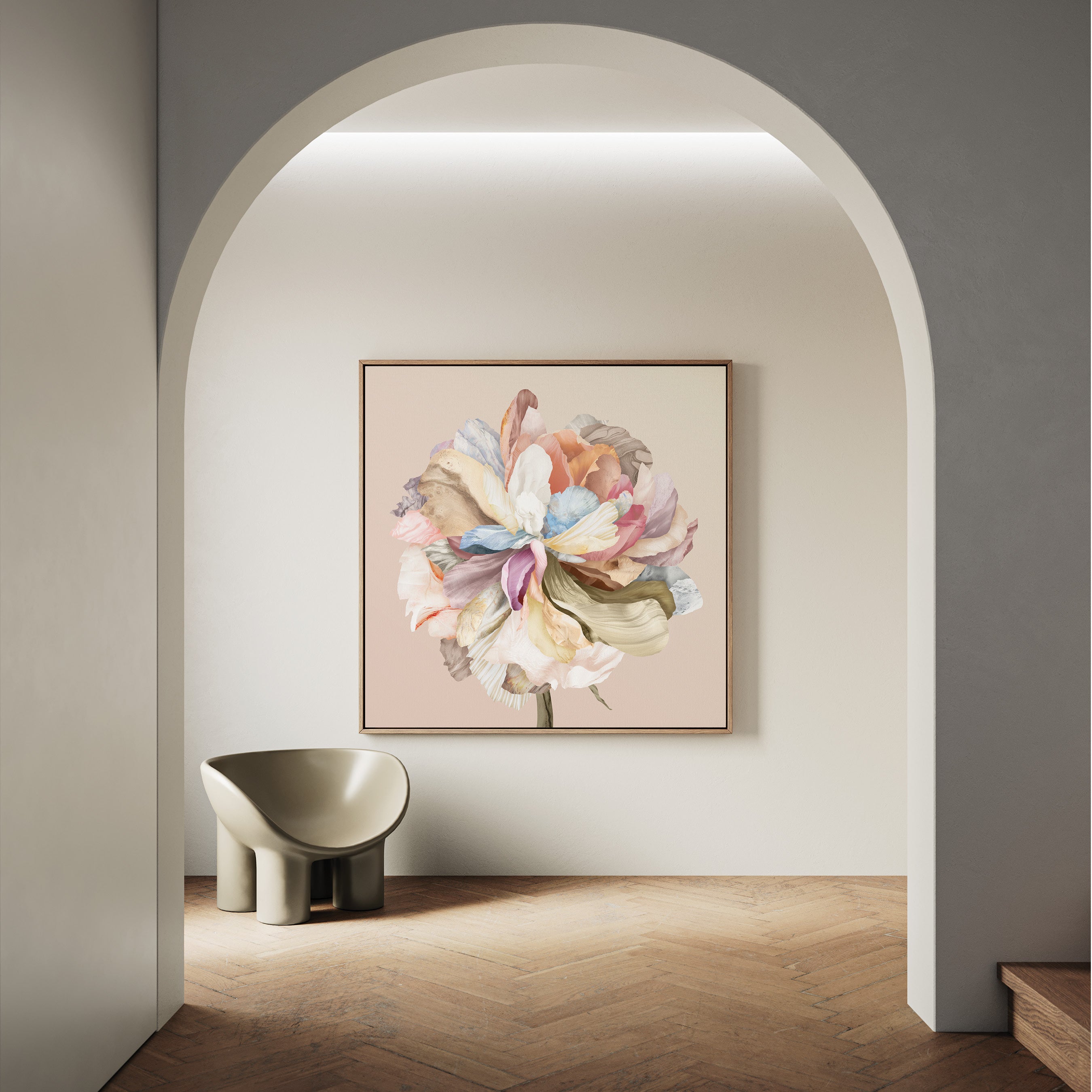 A singular posy, standing tall with grace and conviction, presented in a light, feminine palette of blush and complementary tones. Inspired by motherhood and the values I hope to pass on to my daughters, this piece speaks to the quiet strength found in kindness, humility, and authenticity. Its intricate layering reflects the many complex, imperfect facets that make us who we are. Created as a visual love letter for my daughters, it’s a reminder that softness can carry its own quiet power.