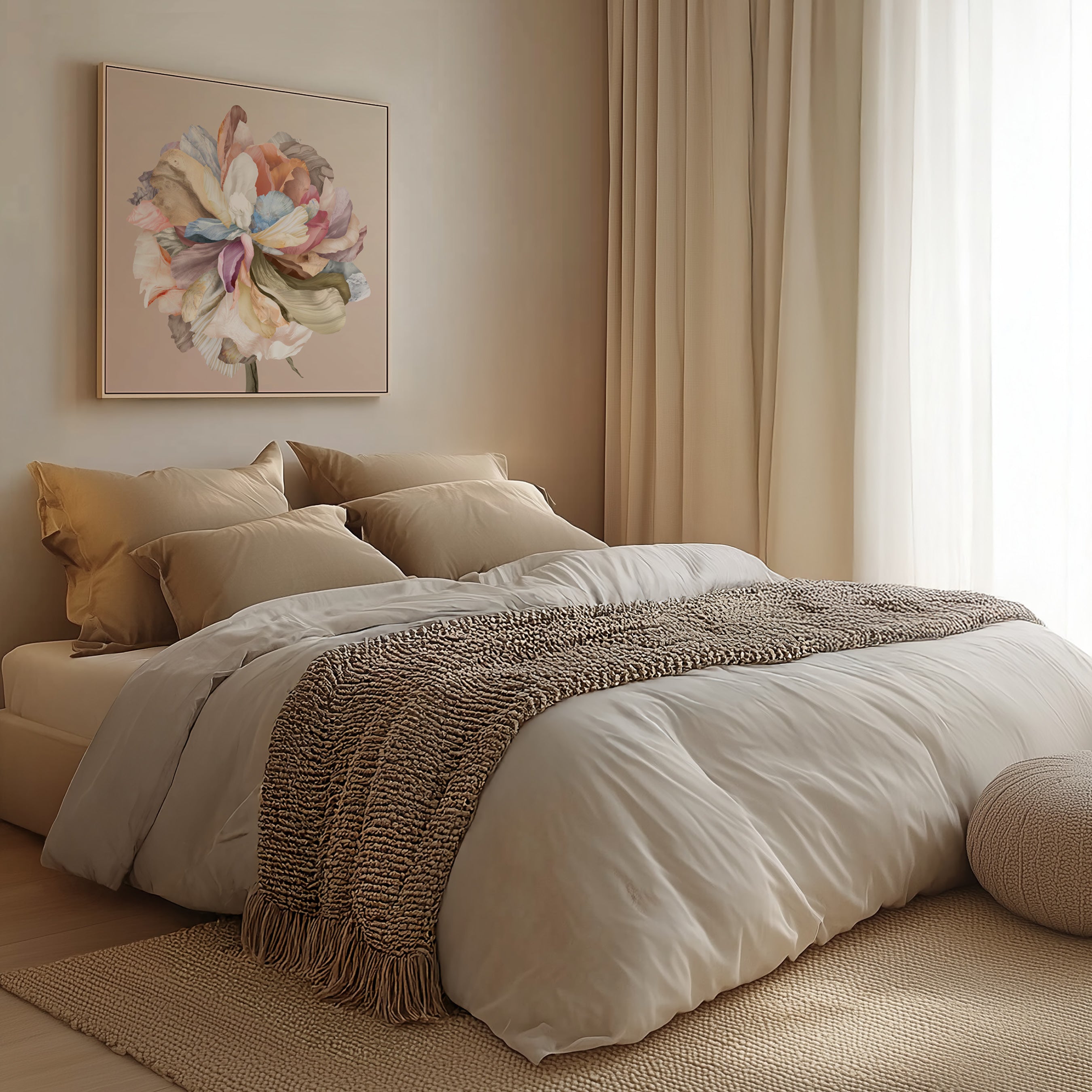 Fine art paper prints arrive with a 5cm white border, designed to create a clean, gallery-style finish that enhances the artwork with a timeless, refined look. For example, a 100 × 100cm paper print will feature a 90 × 90cm artwork area plus a 5cm border on all sides.