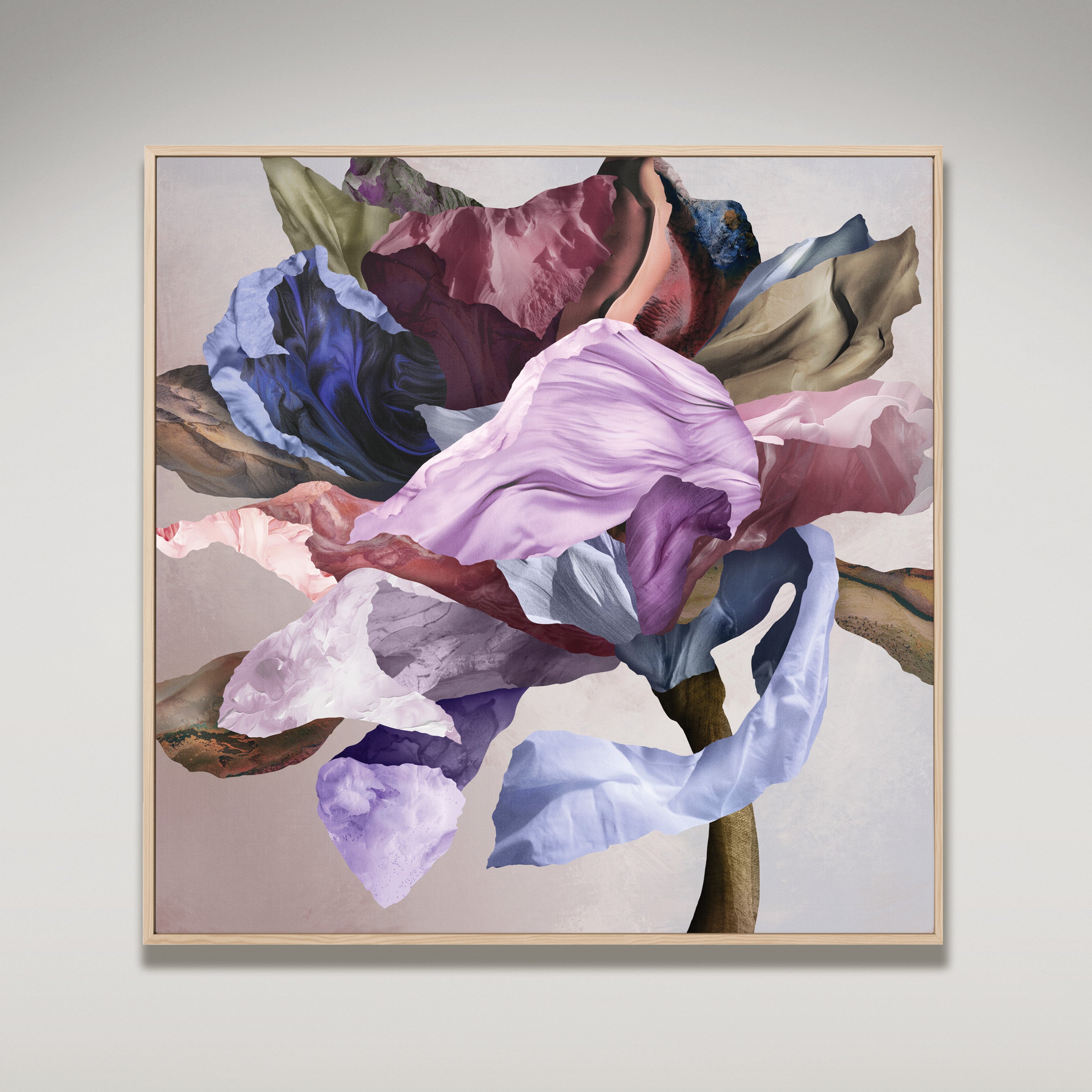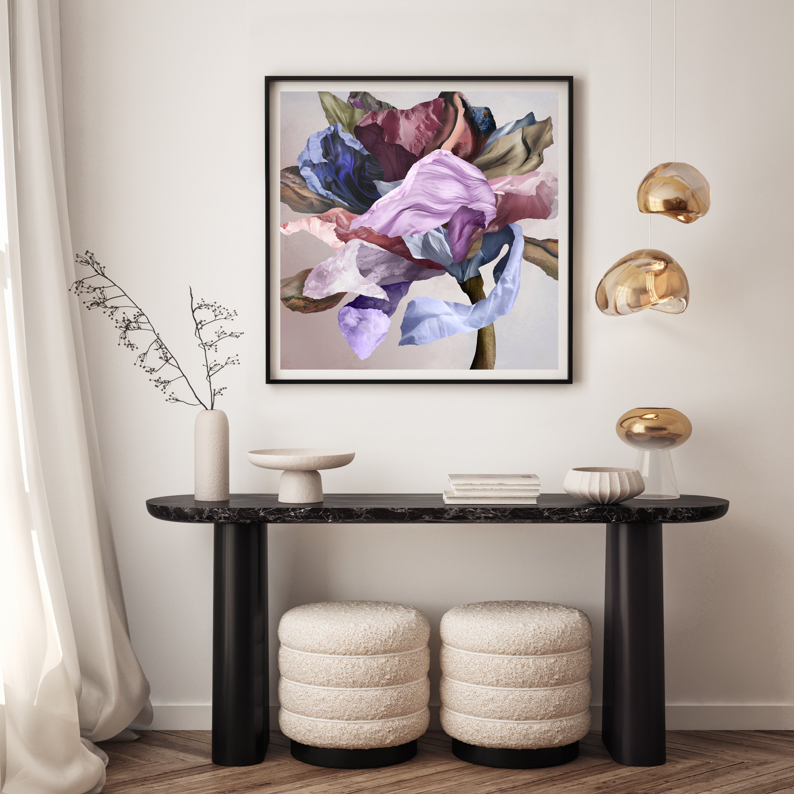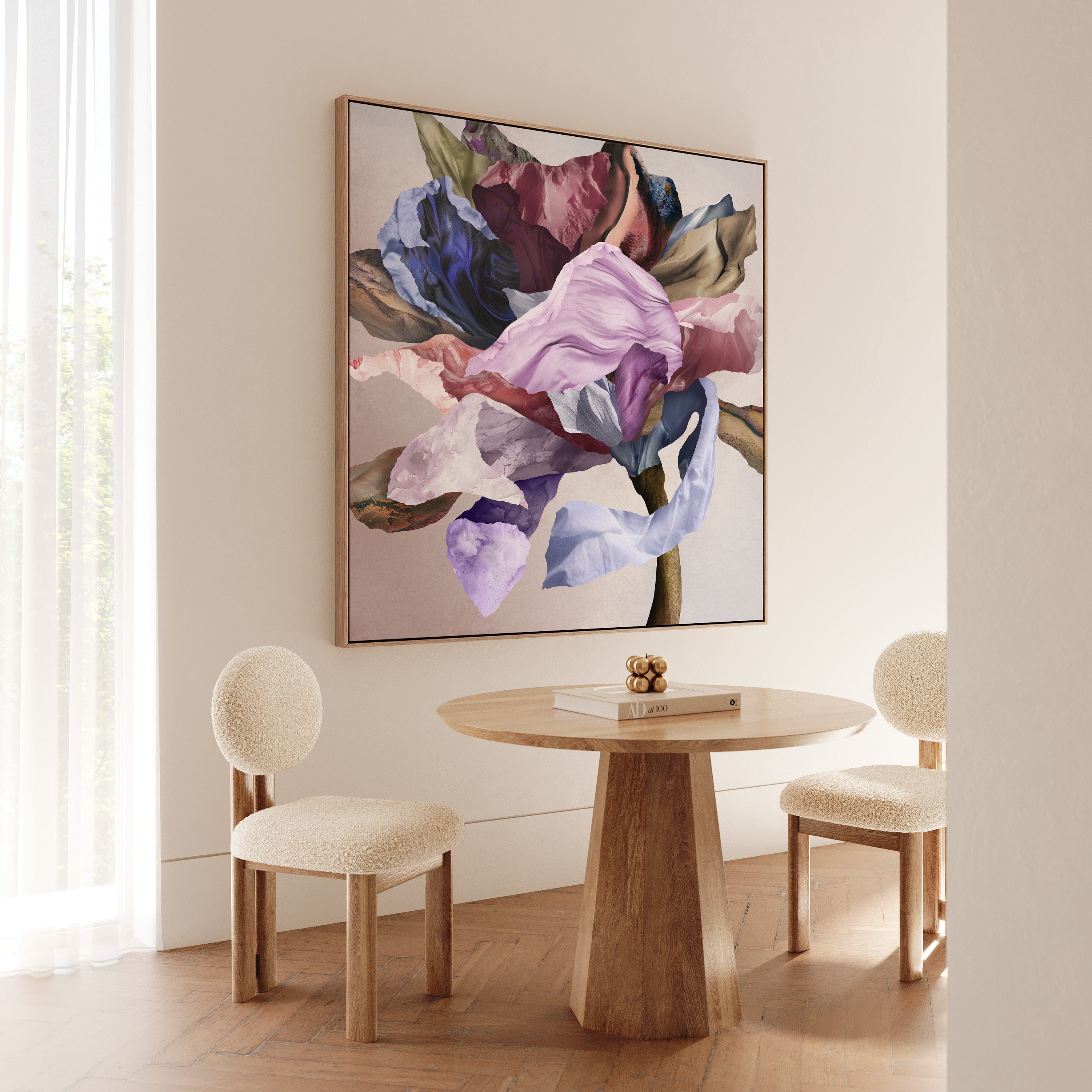 A sweeping, expressive blossom that dances to its own rhythm – fluid, grounded and unapologetically unique. Created as an ode to my eldest daughter, it celebrates the quiet conviction of moving through the world untouched by the pressure to conform. A varied spectrum of purples flows through layered dusky tones and grounding earth hues in rich, textured layers. A tribute to the purity of staying true to yourself, free from the sway of others.