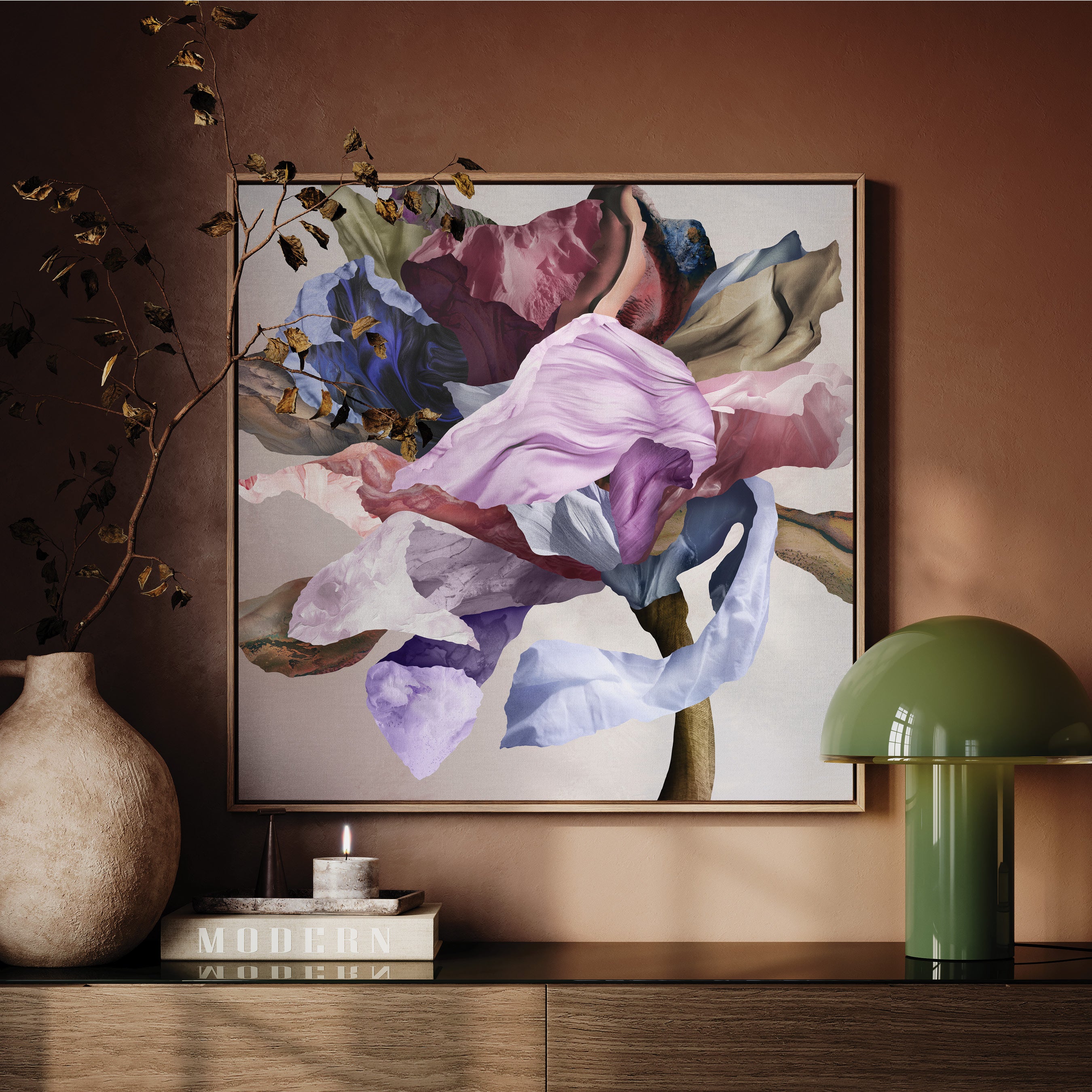 Fine Art Paper: Available framed in a premium shadow box frame, designed to elevate the artwork with space between the glass and print for a gallery-style effect. Frames measure 4cm × 2cm, or 4cm × 3.5cm for oversized works. Anti-reflective glass is standard; for orders delivered more than one hour outside the CBDs of Melbourne, Sydney, Brisbane, and Perth, high-quality perspex is substituted for safer handling in transit.