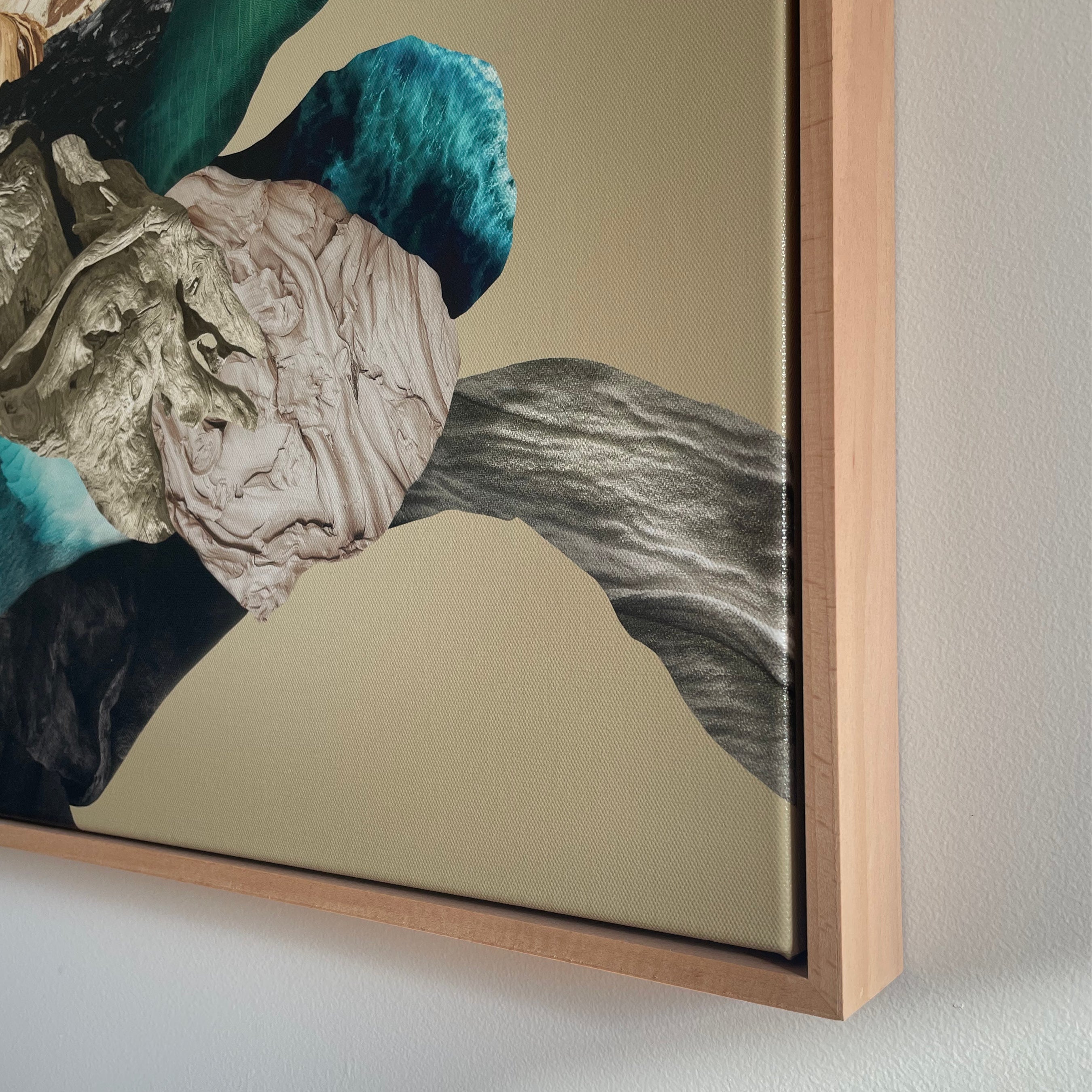 Canvas: Offered in a premium floating frame, where the artwork appears suspended within its border for a refined and dimensional effect. Frame finishes include Tasmanian oak, with its beautiful natural wood grain, or black and white timber with a smooth matte finish. All frames measure 5.5cm deep with a 1cm front face. A stretched canvas without a frame is also available, presenting the artwork with exposed edges for a clean, contemporary finish.